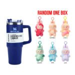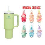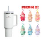 Rotating cover helps prevent splashes and secures the reusable straw in place.